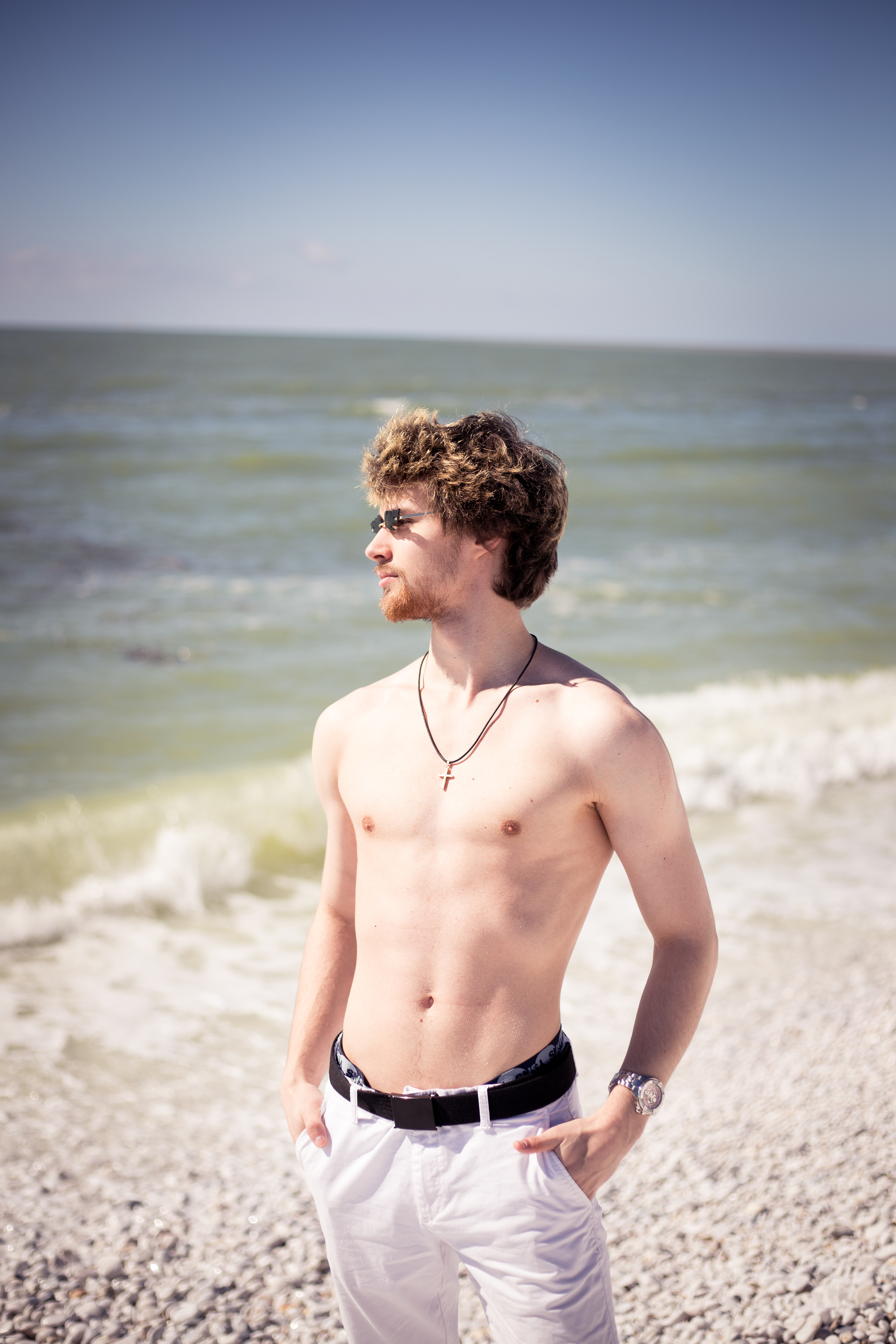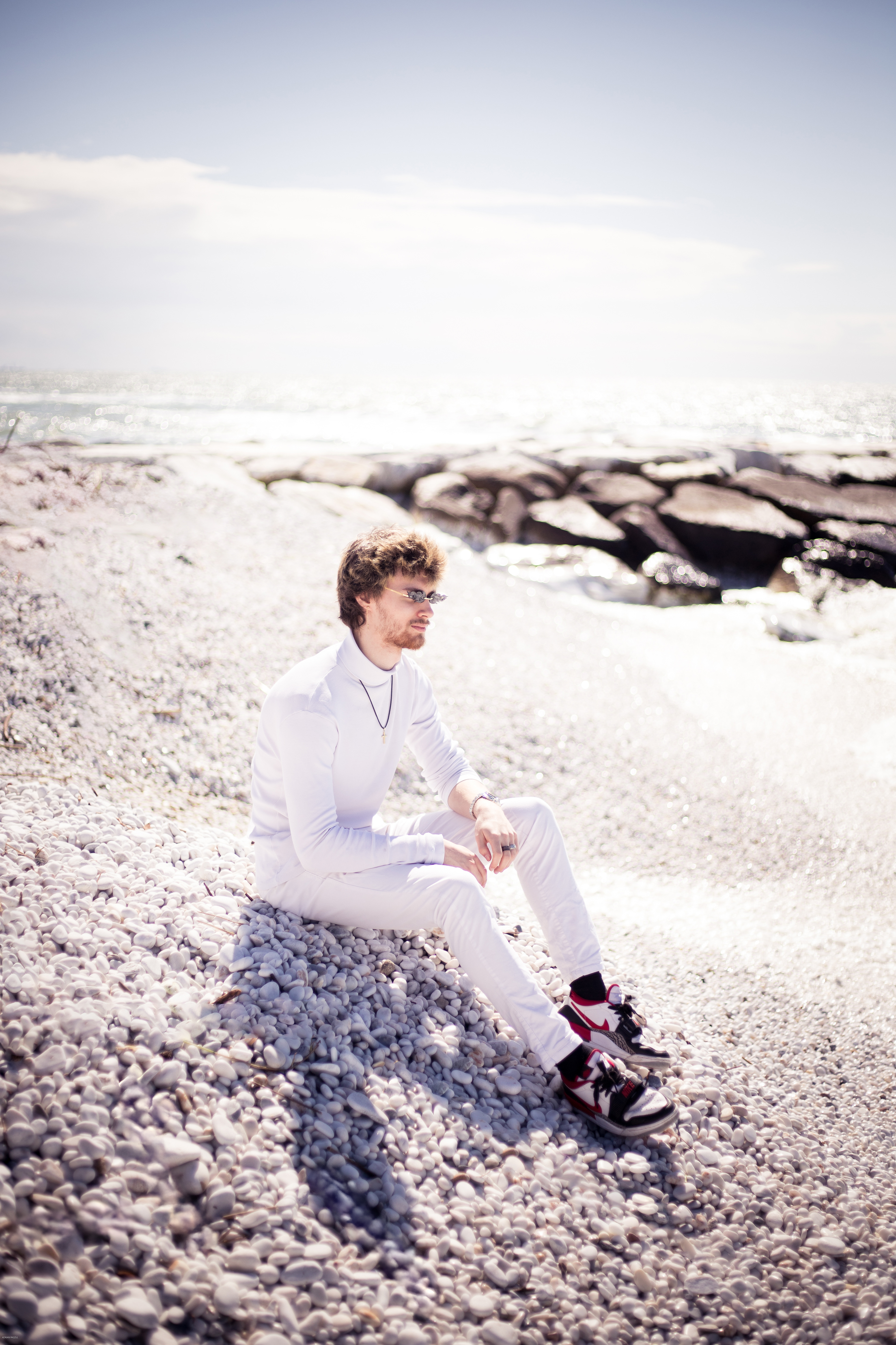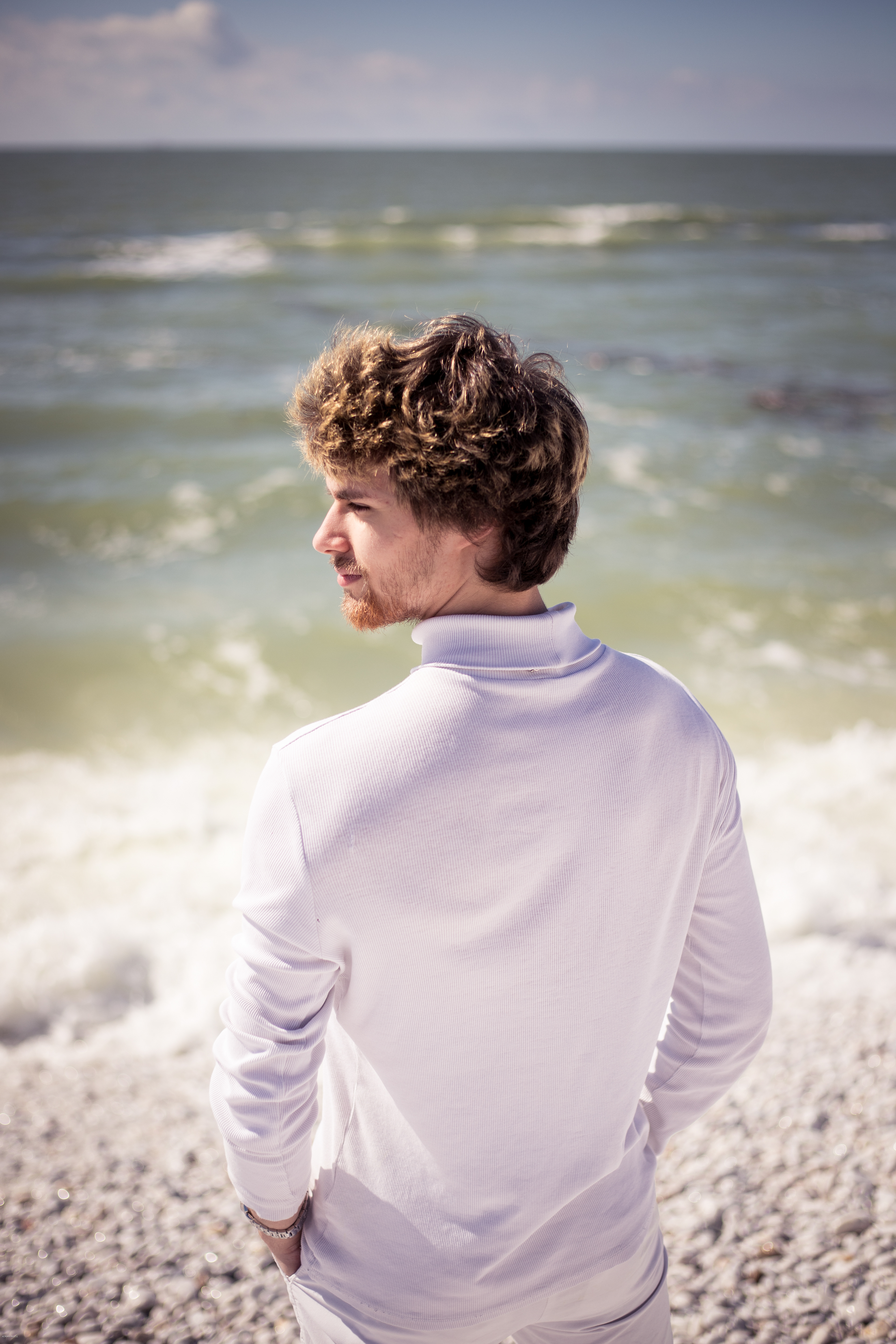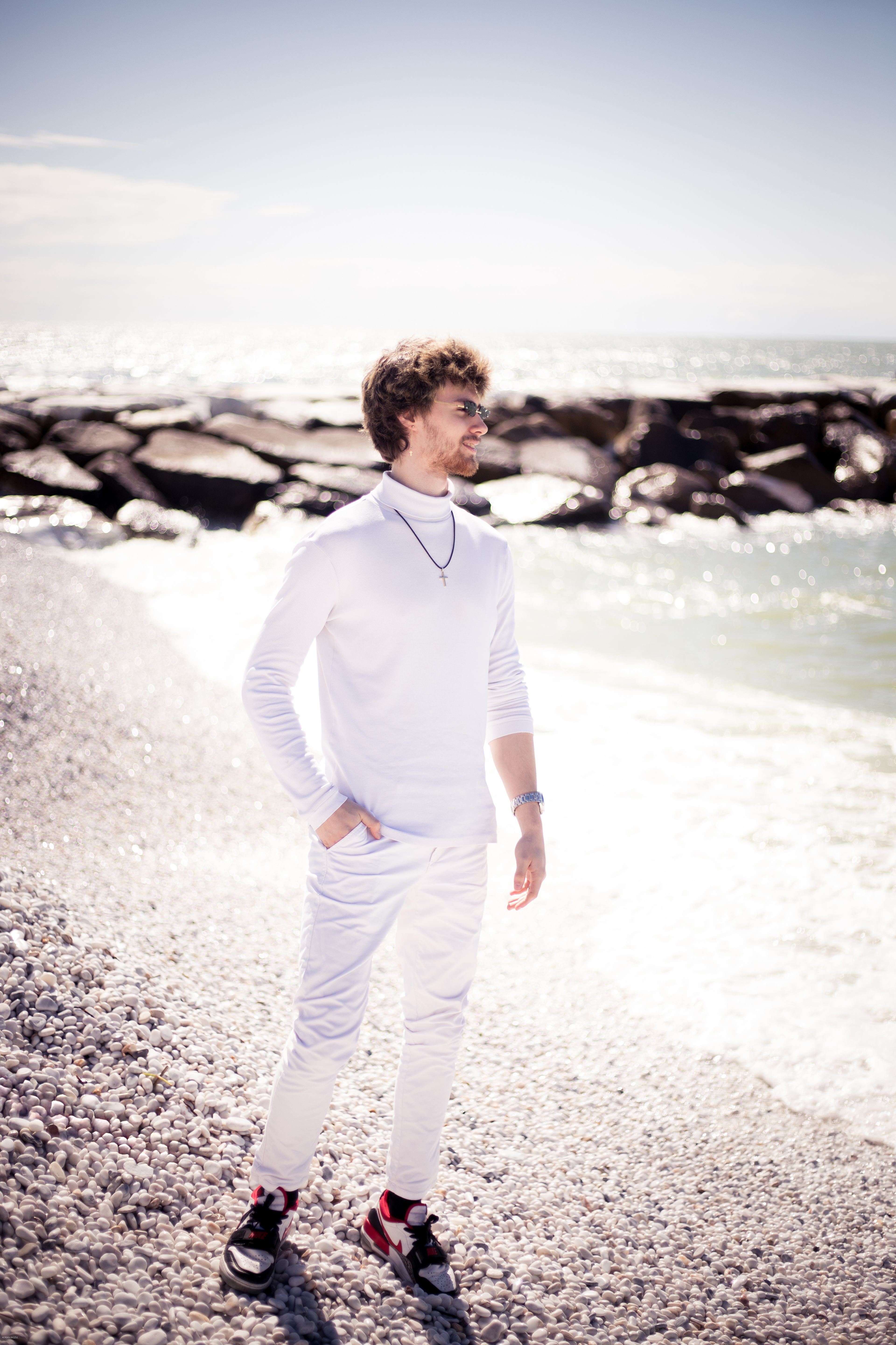 To była wspaniała sesja. Był piękny, słoneczny dzień. Wybraliśmy się z Dawidem nad morze. Jego stylizacja idealnie wpasowała się do białej kamienistej plaży. Sesja trwała jakoś 20 minut, a efekty są świetne.